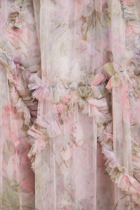 - Floral printed tulle decorated with printed tulle frills