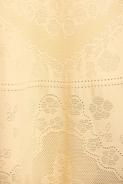 NEW SEASON. The Scallop Lace Pointelle Knit Gown in Citron. This elegant knit gown features delicate scallop lace detailing inspired by romantic vintage lacework. Designed with a softly fitted silhouette, it offers effortless elegance with a modern, feminine feel.