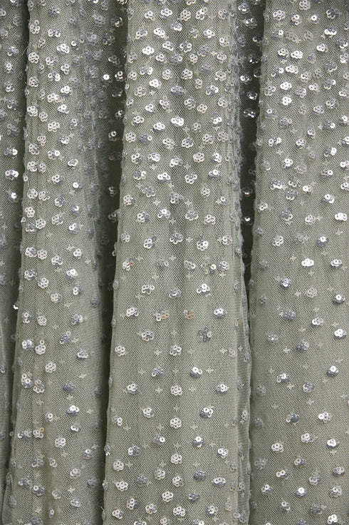 - 100% of the sequins used for this design are made from upcycled materials using self-generated plastic waste.