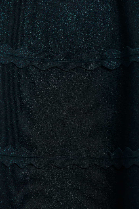 - Knitted stretch viscose dress with metallic fibre, decorated with scallop trims
