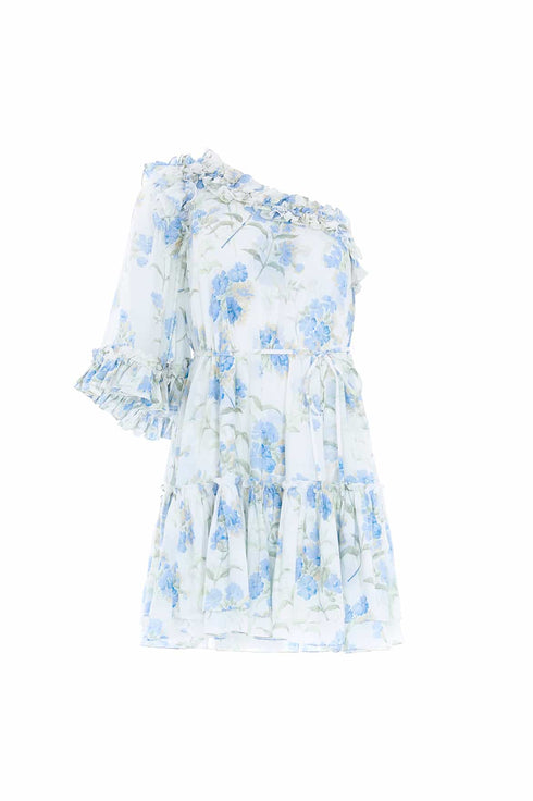 • Summer Posy Chiffon One-Shoulder Micro Mini Dress