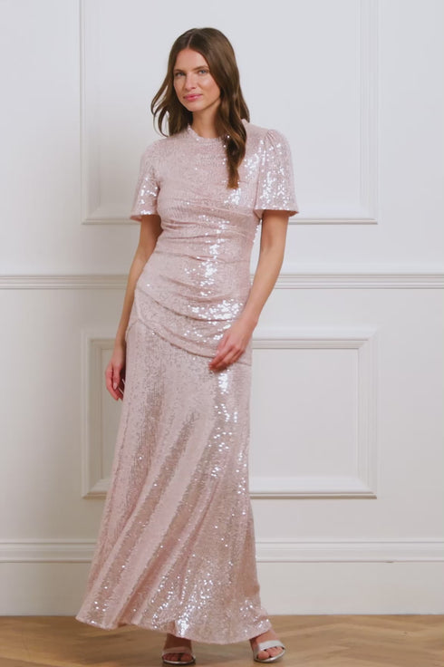 - 100% of the sequins used for this design are made from upcycled materials using self-generated plastic waste.