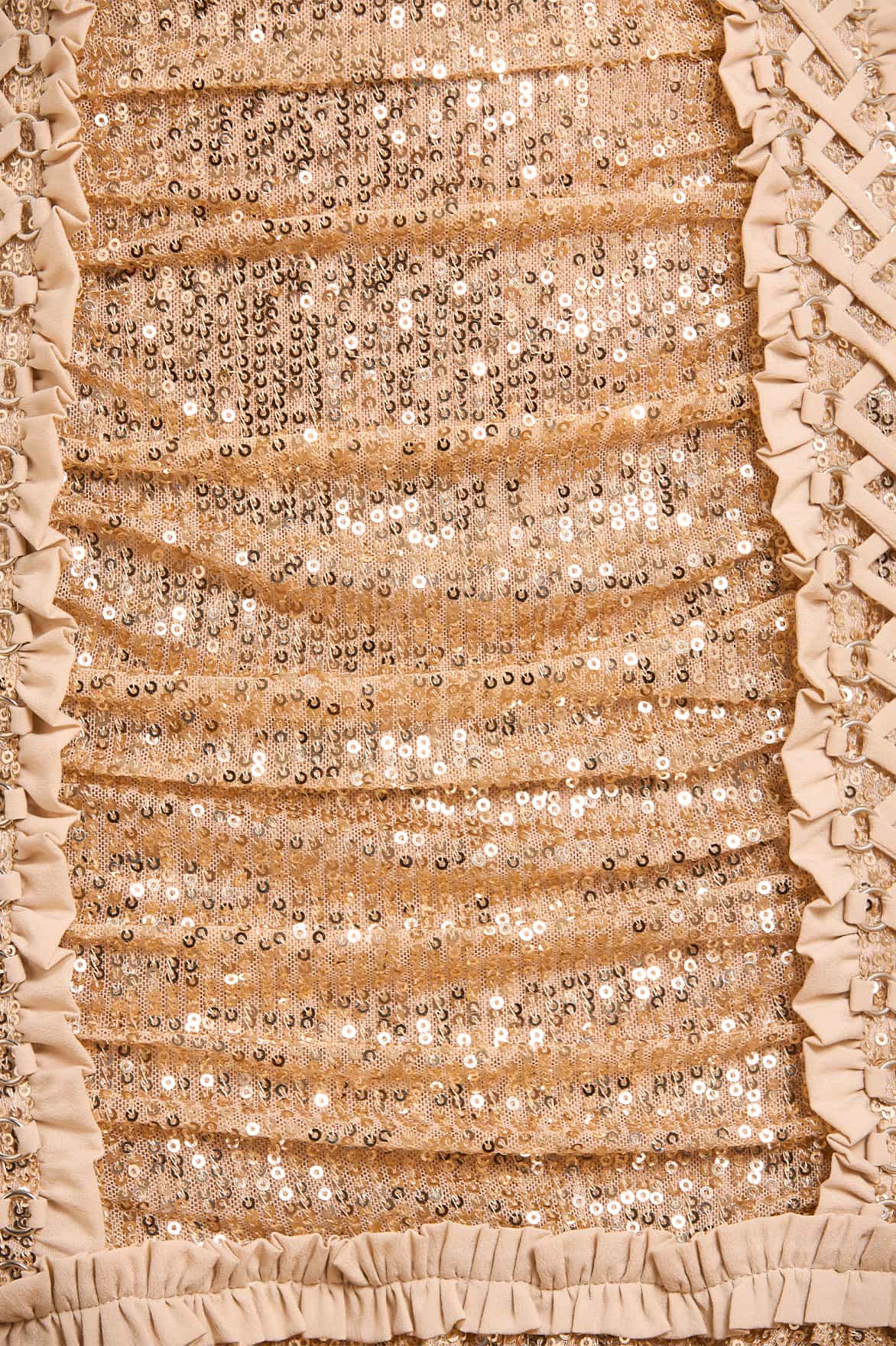 -Sequin stretch mesh decorated with lacing detail.