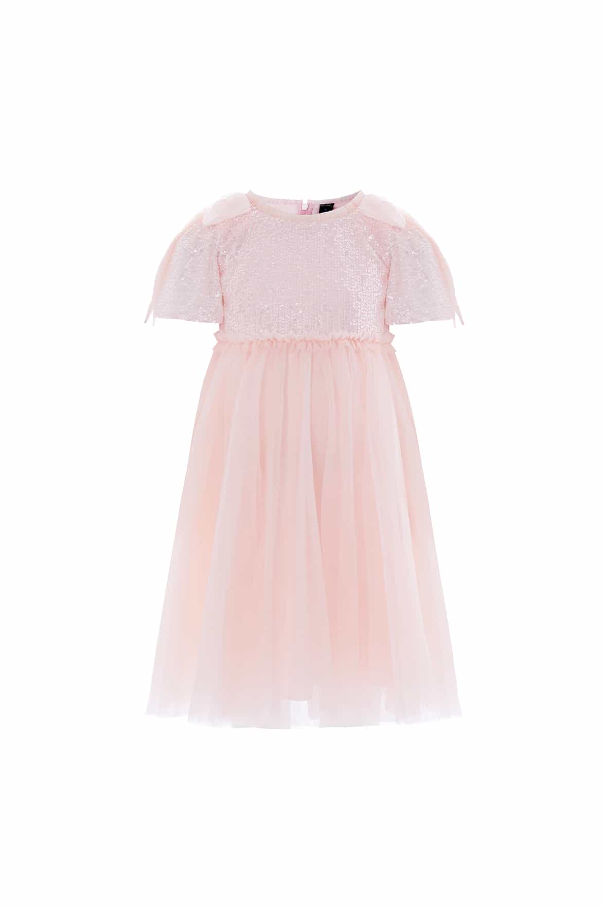 NEW SEASON. The Paloma Bow Kids Dress in Seashell. A charming design crafted in layers of soft tulle. Finished with a beautiful bow and a full skirt, it captures classic Needle & Thread femininity in miniature form.