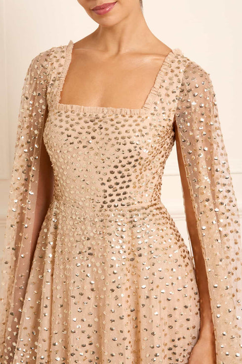 Sequin Dash Cape Ankle Gown