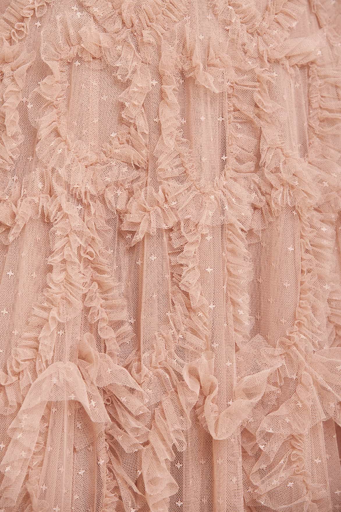 - Kisses tulle decorated with layers of tulle ruffles