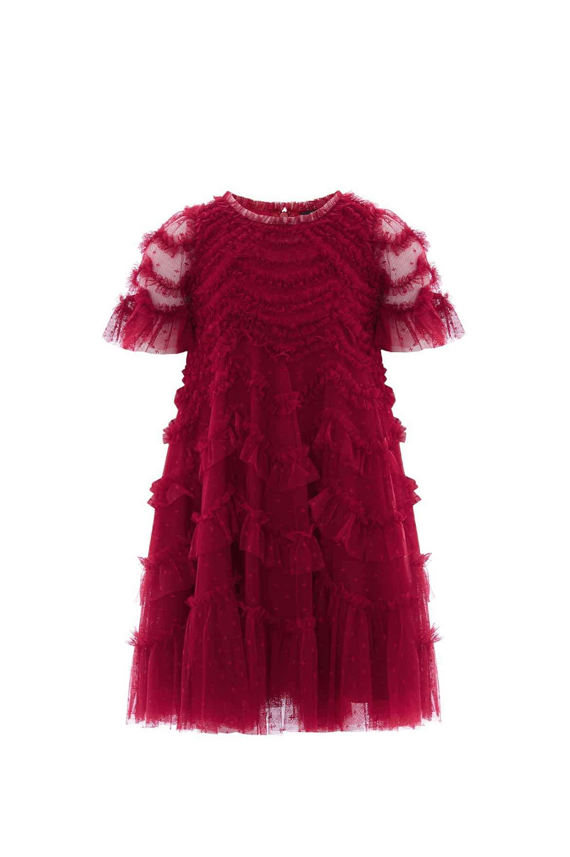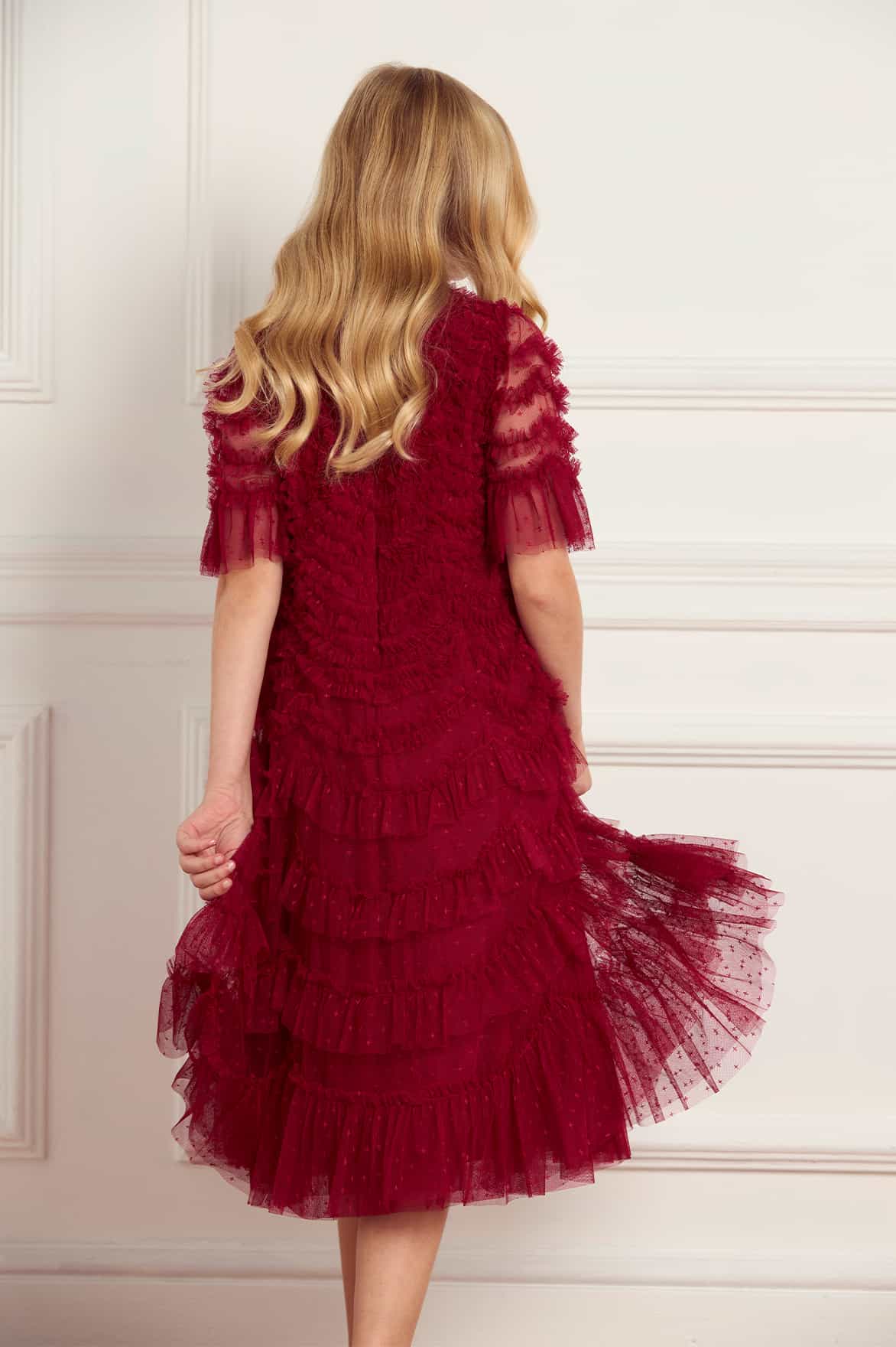 NEW SEASON. The Aviana Kids Dress in Red. A joyful burst of colour and texture. Designed with Needle & Thread’s signature scallop frills in delicate tulle, the dress balances playful volume with lightweight comfort. The bold red tone makes it a statement piece, ideal for festive occasions and family celebrations. Perfectly pairs with the Aviana Off-Shoulder Gown in Red from the adult collection for matching moments.