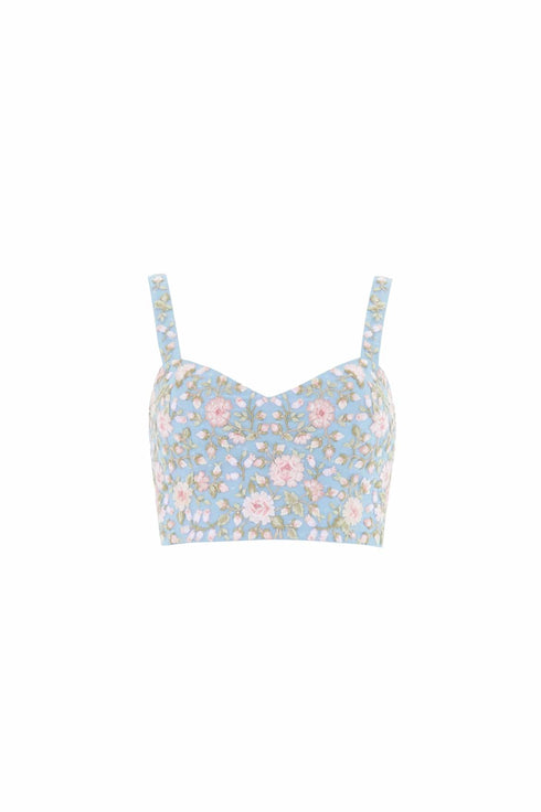 NEW SEASON | NEEDLE & THREAD EXCLUSIVE. The Eden Rose Top in Aqua/Multi. This romantic top features intricate Eden Rose embroidery with cascading floral motifs that softly disperse across the design. Finished with a shirred back panel for a flexible and flattering fit, it offers effortless elegance. The perfect pairing with our coordinating Eden Rose skirt for luxury summer dressing.