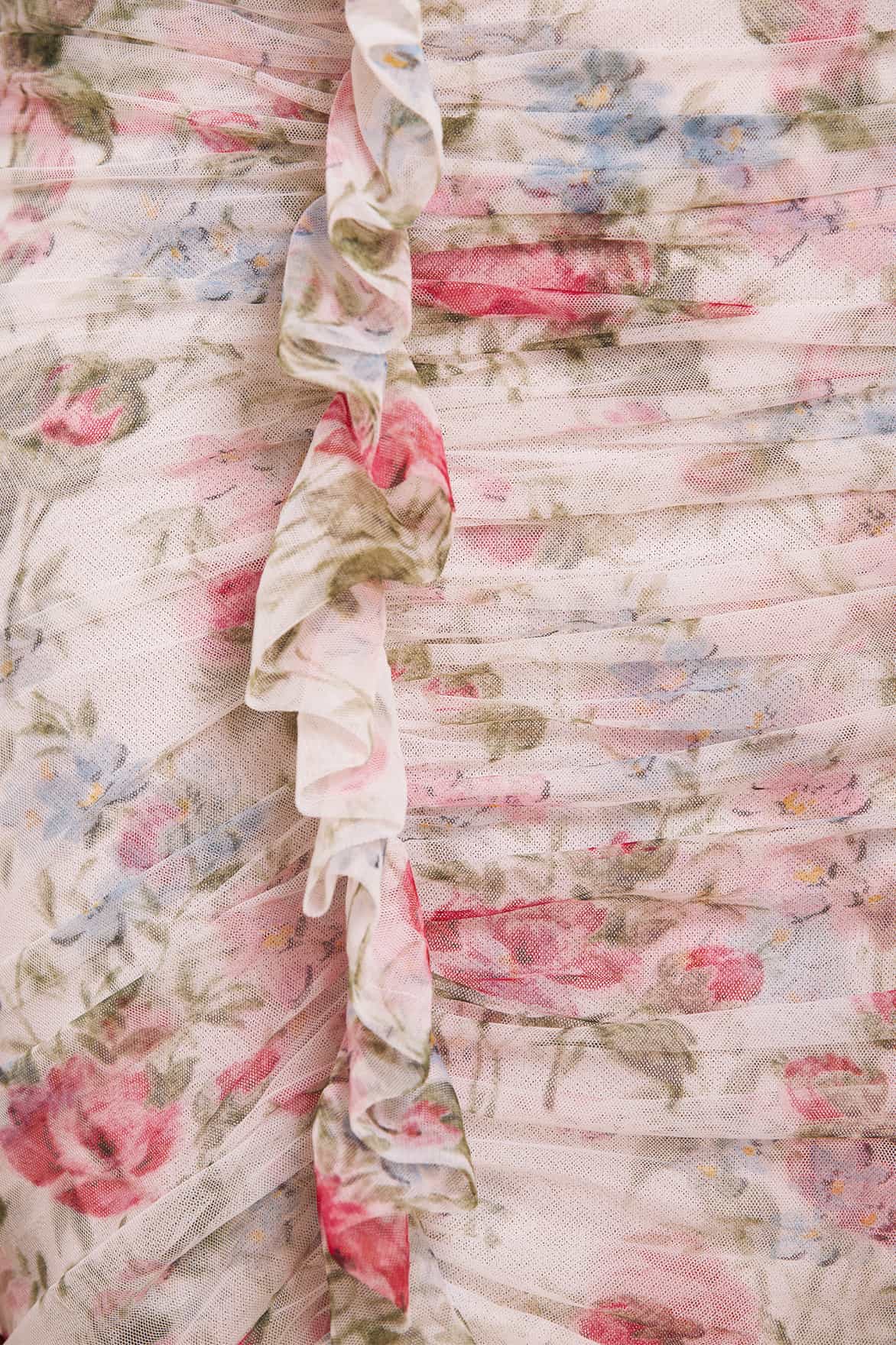 - Floral printed tulle decorated with printed tulle frills