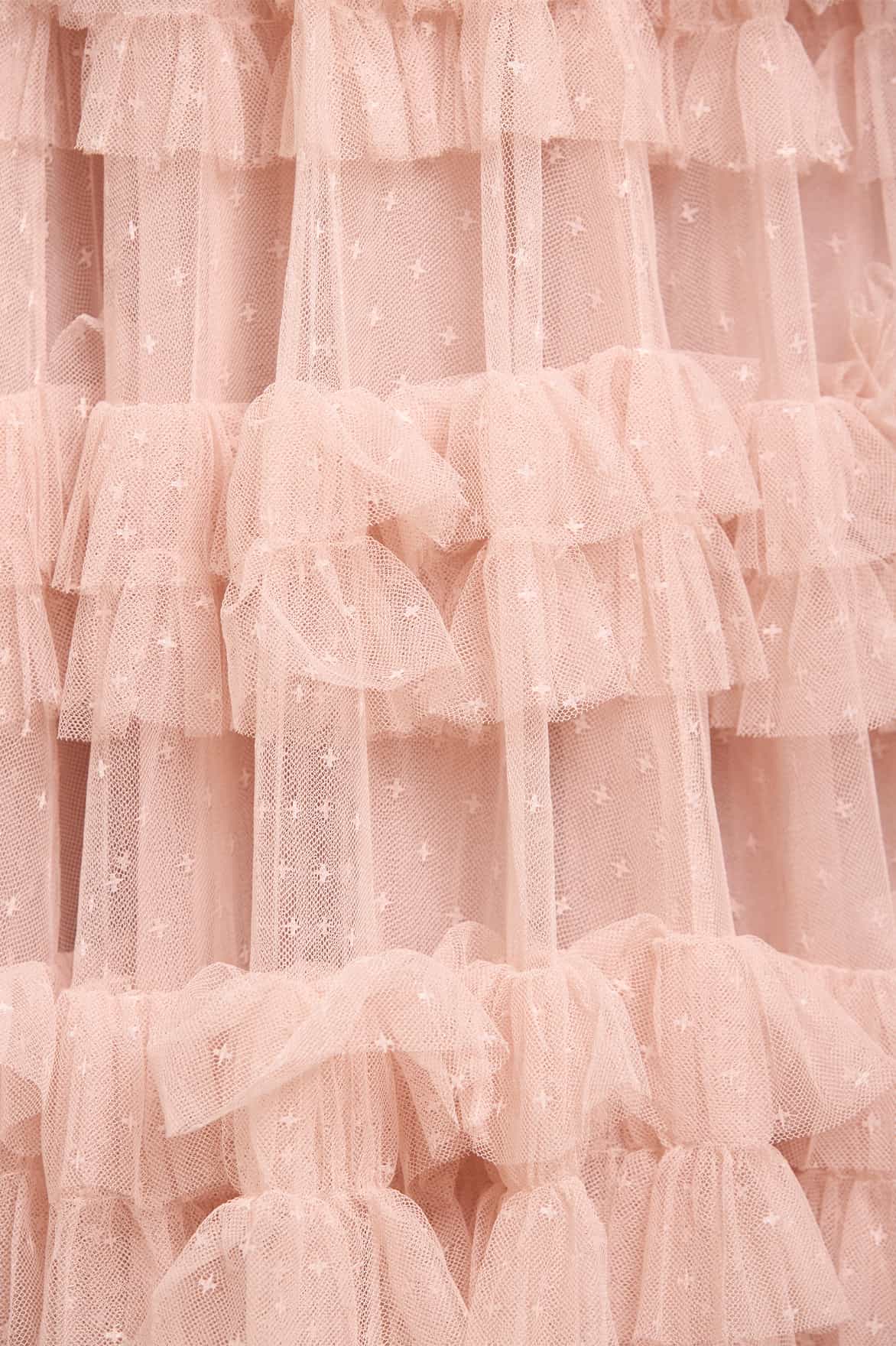 - Kisses tulle decorated with layers of kisses tulle ruffles.