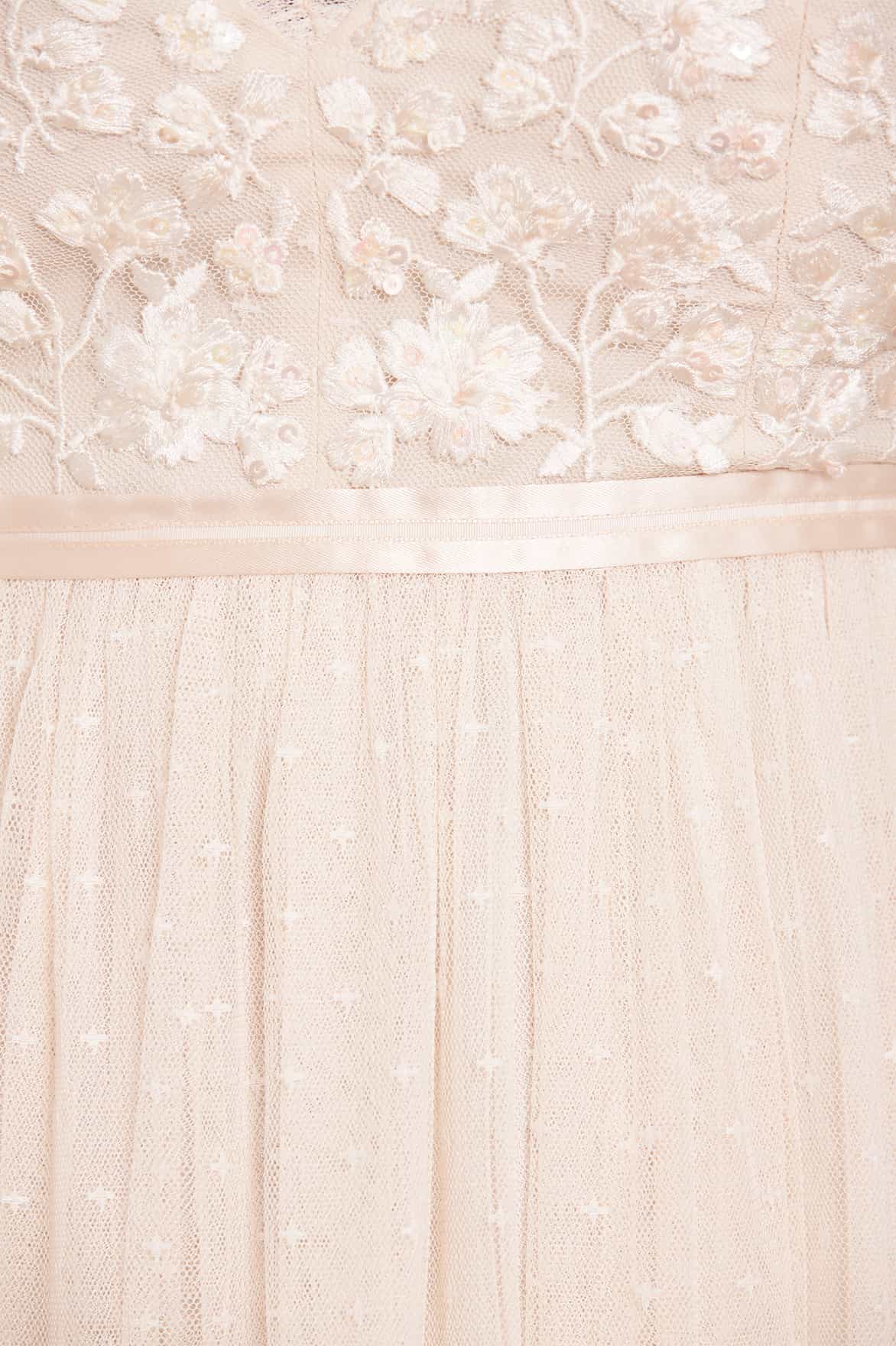 NEEDLE & THREAD EXCLUSIVE. The Posy Cami Gown in Cream. This gown is adorned beautifully with clusters of intricate floral bouquets and shimmering sequins for a sparkling effect. The skirt is developed with layers of signature Needle & Thread soft tulle for a romantic look. A simple but yet striking gown you'll forever treasure.