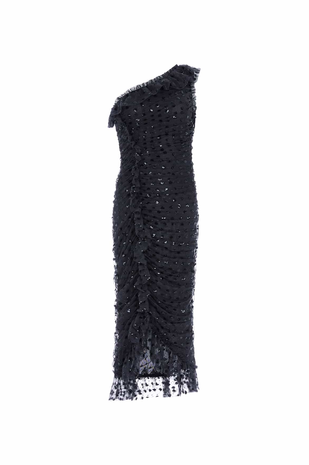 The Dotty Ruched Gloss One Shoulder Ballerina Dress in Graphite. This ballerina dress is adorned with scattering sequins throughout, adding an all over romantic shimmering effect. The outside shell of this dress is created in our signature soft tulle. Gently gathered and perfectly engineered around the body to create the most flattering bodycon silhouette. The lining of this style in made in stretch power mesh, enabling a figure-hugging shape with ultimate comfort and fit. Contours to the body and hugs in all the right places