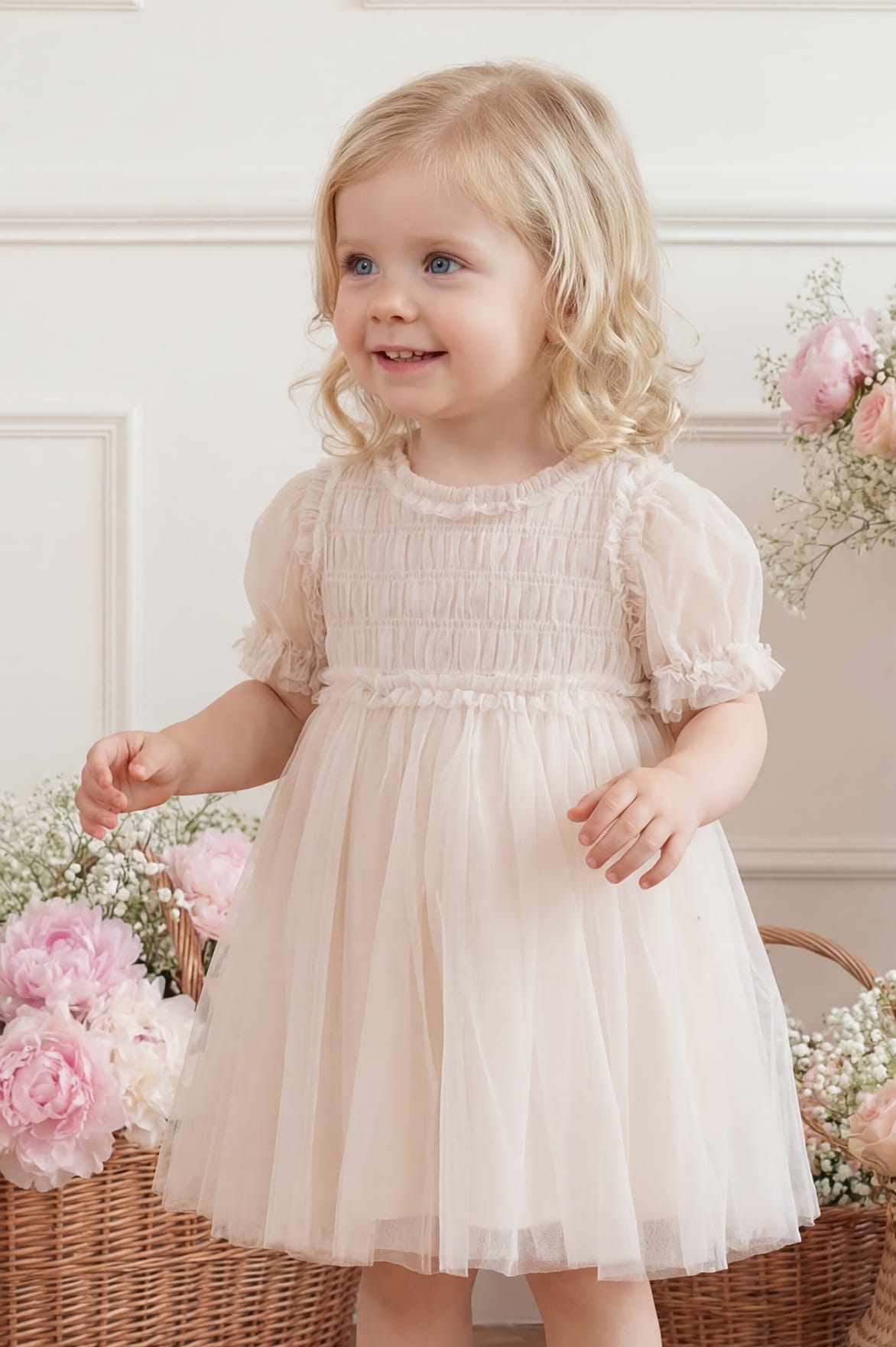 - Tulle decorated with smocking detail