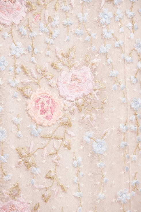 - Kisses tulle decorated with multi coloured embroidery
