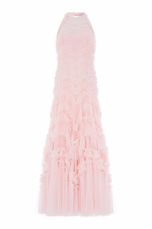 Camille's Garden Chiffon Halter-Neck Ankle Gown