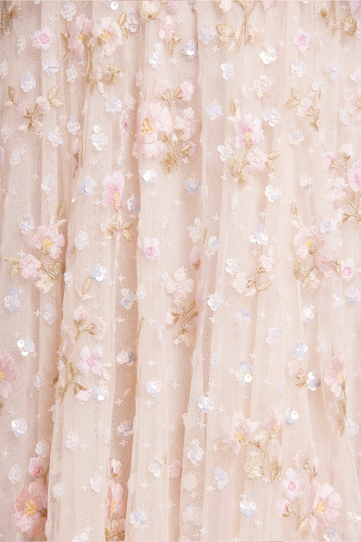 - Kisses tulle decorated with contrast sequins and embroidery