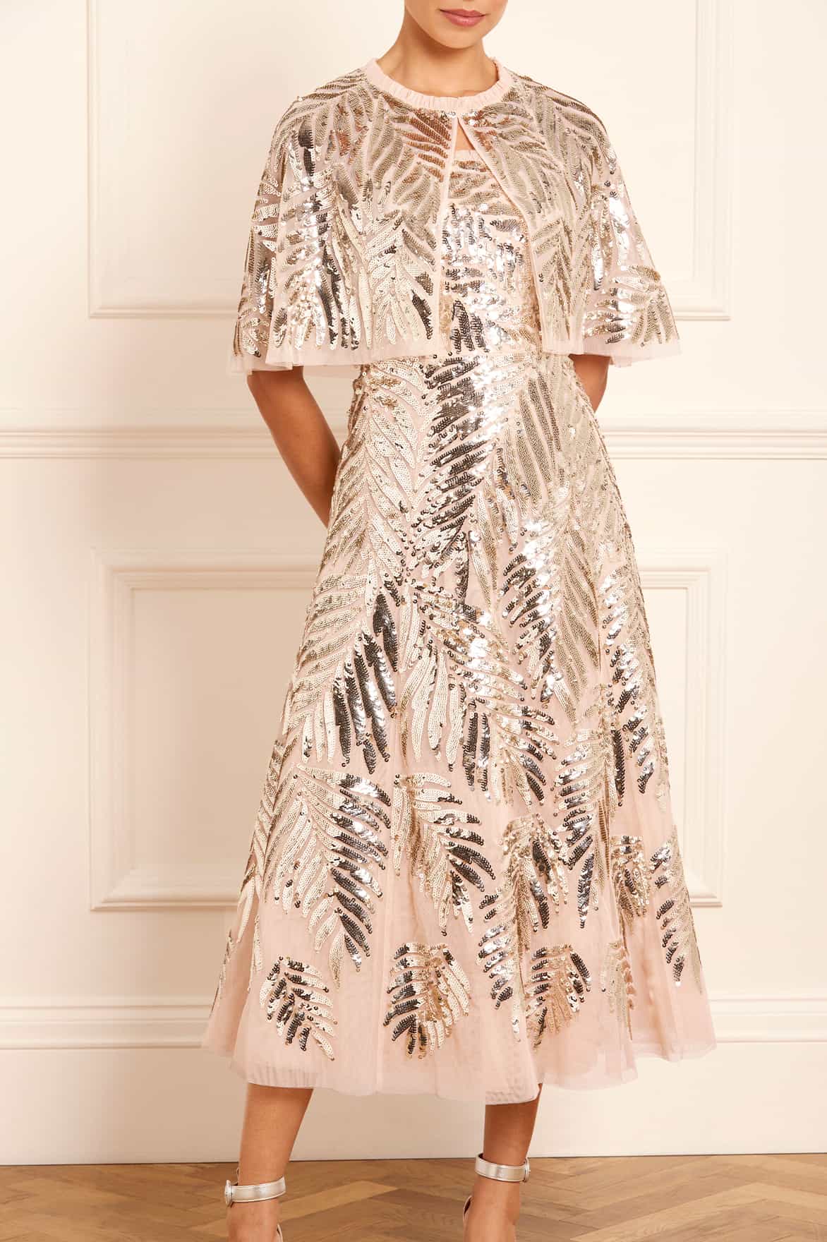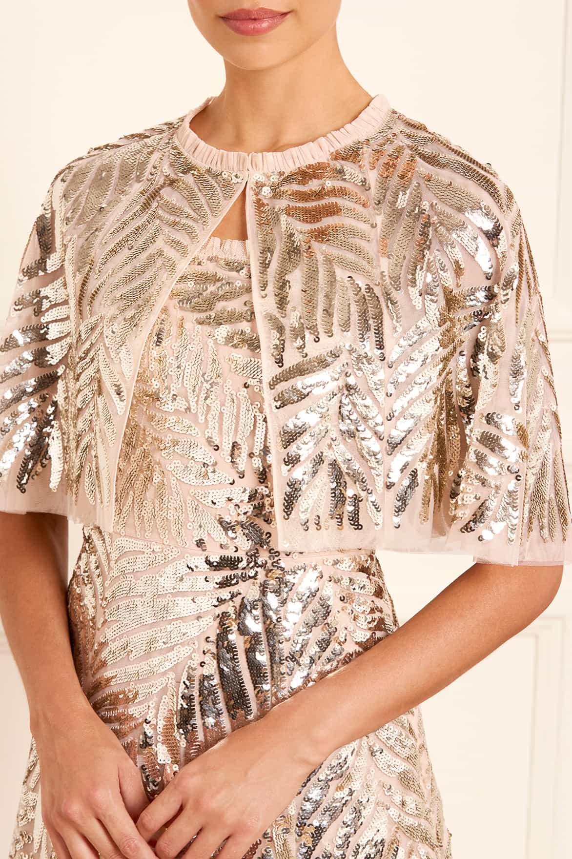 Feather Sequin Short Open Cape