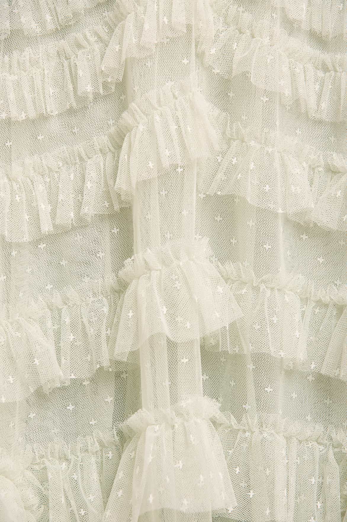 The Lola Backless Ballerina Dress in Mist, a beautiful new addition for the season. Adorned with signature Needle & Thread elements, this dress features soft tulle and delicately gathered frills, creating a frothy, engineered texture. The backless design adds a romantic, playful touch, while the ballerina-length skirt enhances its graceful silhouette. Perfect for weddings, birthdays, or any special occasion, this dress promises to be a showstopper.