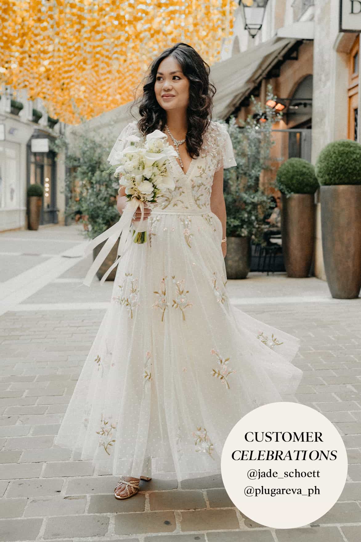 - Tulle decorated with multi-coloured floral embroidery and iridescent sequins