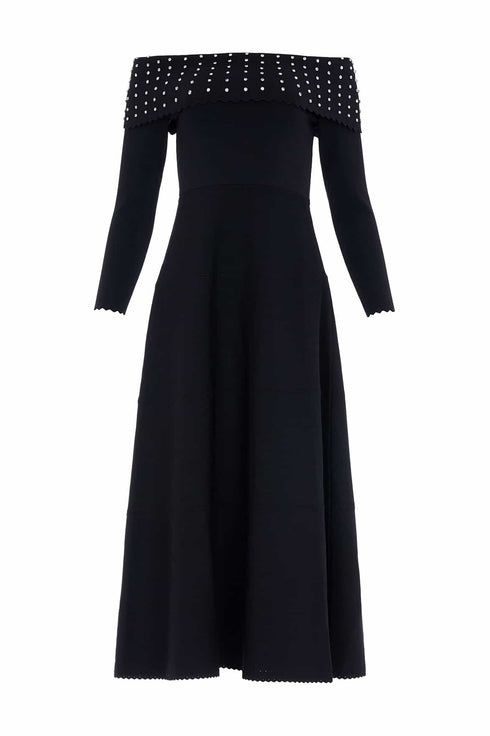 - Knitted stretch viscose dress with scallop and pointelle details, decorated with diamante gems