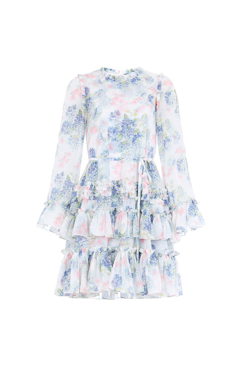 Hydrangea Chiffon Round Neck Mini Dress