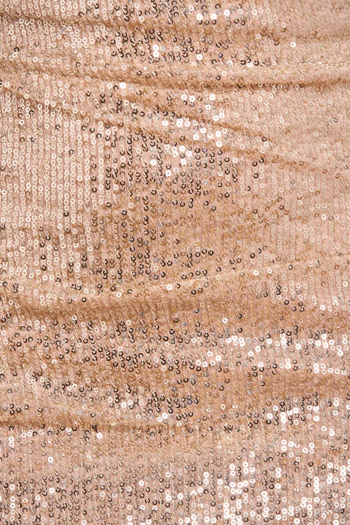 The Nova One-Shoulder Ankle Gown in Silver. This gown is inspired by vintage Hollywood glamour. Beautifully designed with an elegant off-the-shoulder structure. Adorned all over with tiny glittering sequins for the ultimate statement. Crafted with a slim silhouette enhanced by soft drapes across the body, leading to a fluid sweeping skirt. The perfect romantic style for an upcoming special occasion. We hope you adore this new style as much as we do at Needle & Thread head office.
