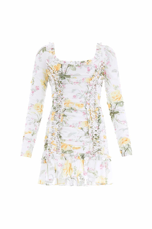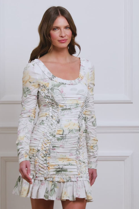 Rose Crepe Long Sleeve Micro Mini Dress