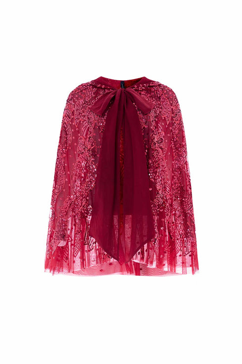 Sequin Ribbon Hooded Cape