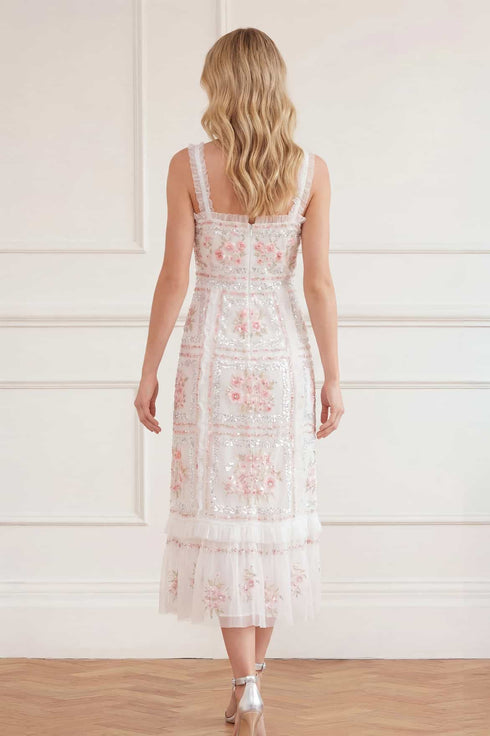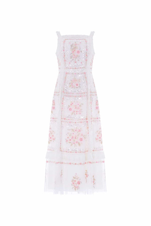 NEW SEASON. The Blossom Bib Ballerina Dress in Swan White/Multi. Inspired by the final blooms of summer, this romantic ballerina dress features delicate floral detailing set against a softly structured bib bodice. The full, flowing skirt creates elegant movement and a beautifully balanced silhouette. A timeless choice for luxury occasion wear and summer celebrations.