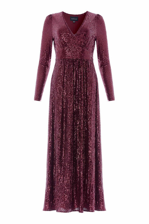 NEW SEASON | NEEDLE & THREAD EXCLUSIVE. The Chelsea V-Neck Gown in Claret. Sculpted with signature volume and lightweight layers, this design is both striking and comfortable. This piece pairs a refined V neckline with dramatic tulle tiers whilst the rich claret hue enhances its bold elegance, making it a standout piece for any event.