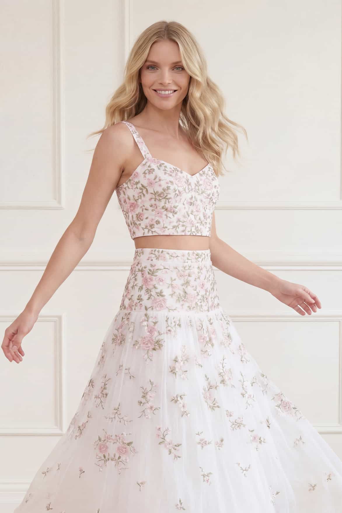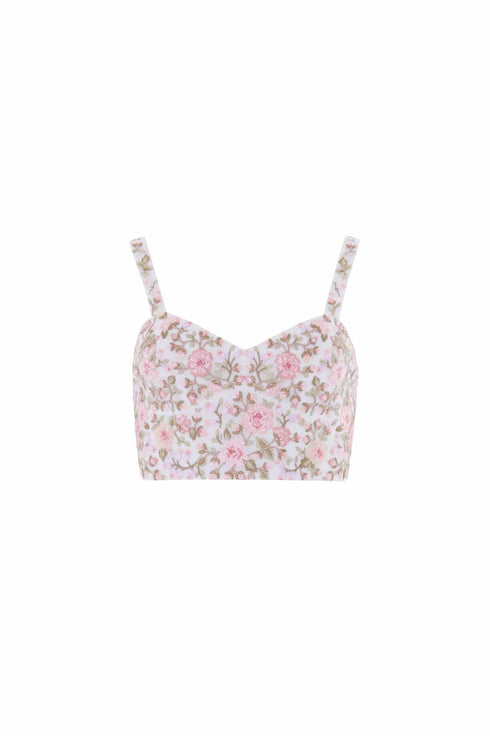 NEW SEASON. The Eden Rose Top in Swan White/Multi. A beautifully embroidered top adorned with statement Eden Rose florals inspired by early 1900s archive paintings. Designed with a softly structured silhouette and a shirred panel at the back of the bodice for comfort and ease of fit. The perfect pairing with our coordinating Eden Rose skirt for elevated occasion styling.