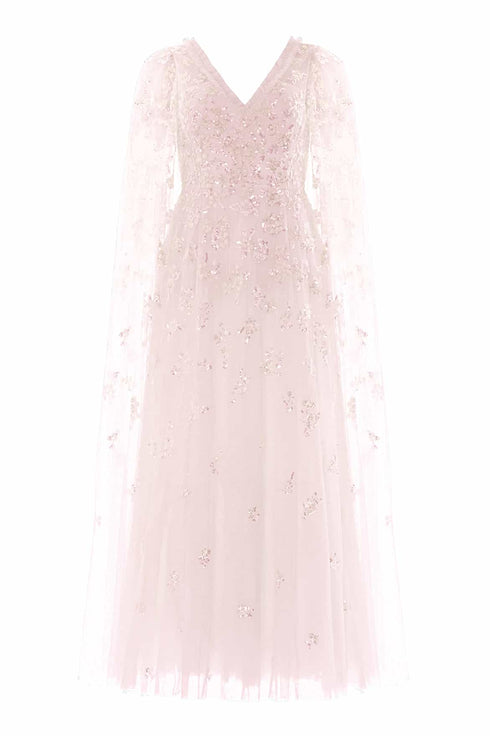 Freesia Shimmer Cape Sleeve Ankle Gown