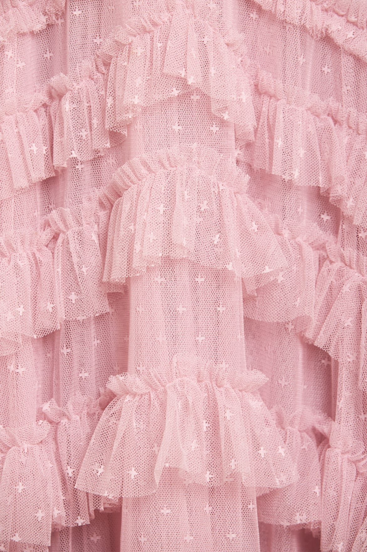 - Kisses tulle decorated with layers of tulle ruffles