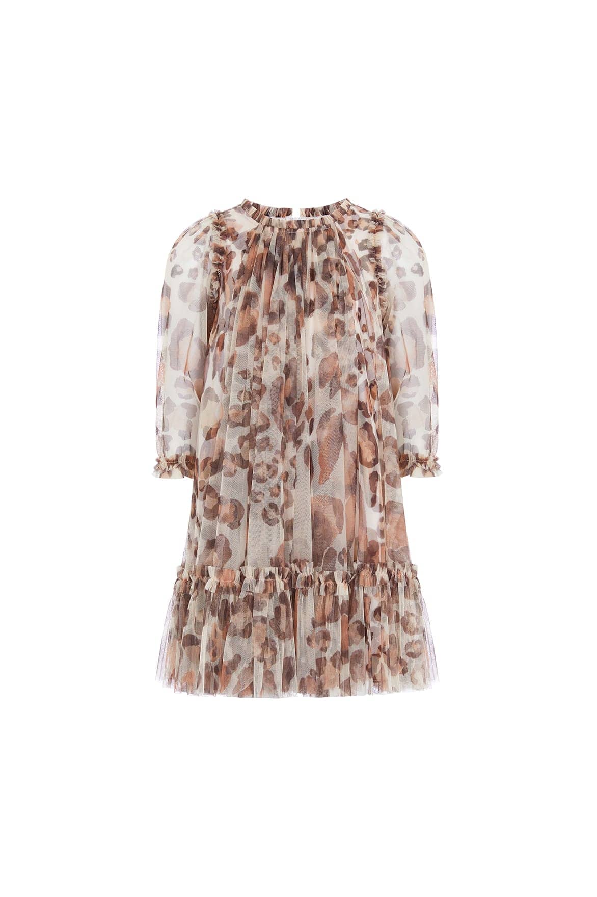 - Leopard printed tulle decorated with layers of printed tulle ruffles
