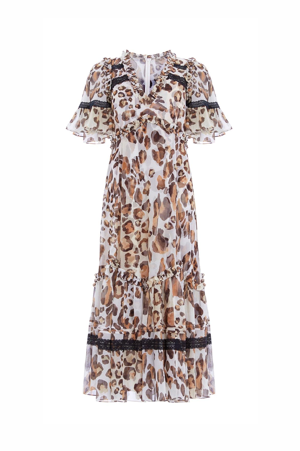 - Leopard printed georgette decorated with lace trims