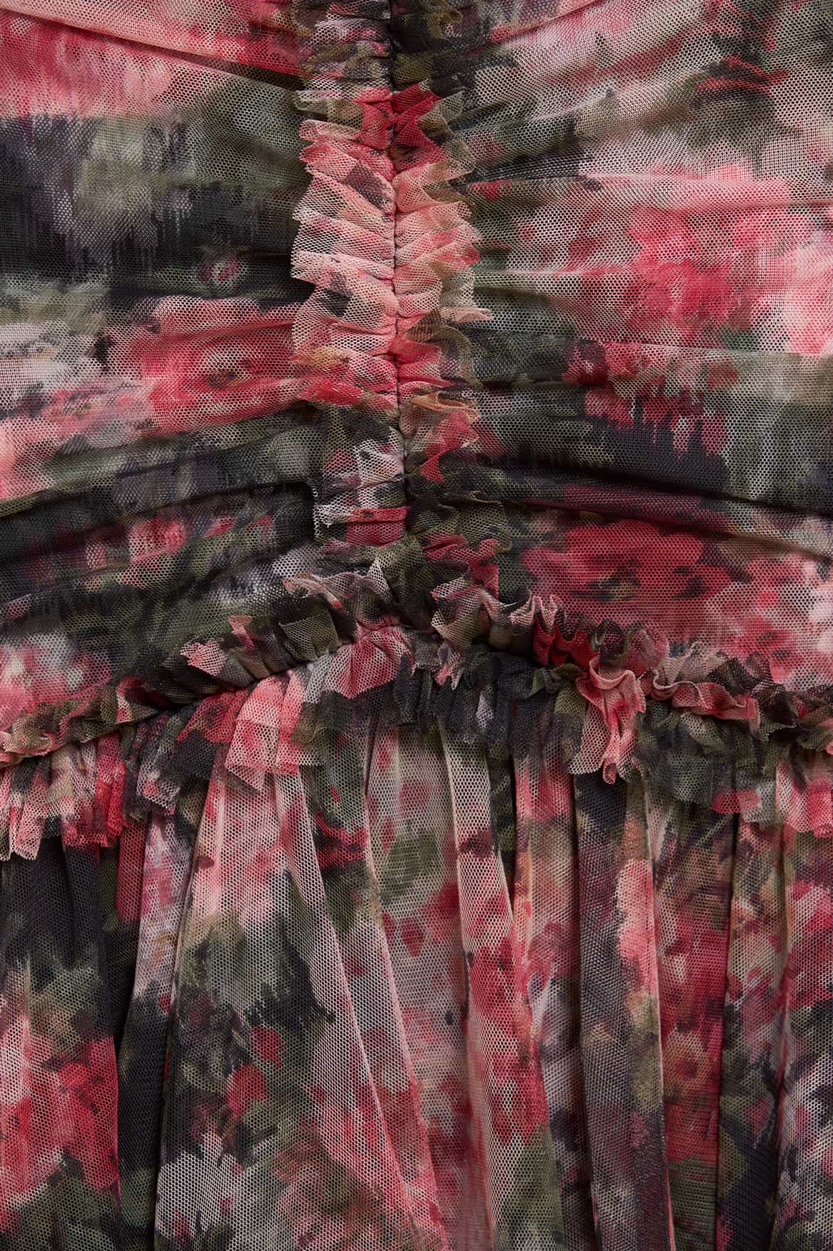 - Floral printed tulle decorated with printed tulle frills
