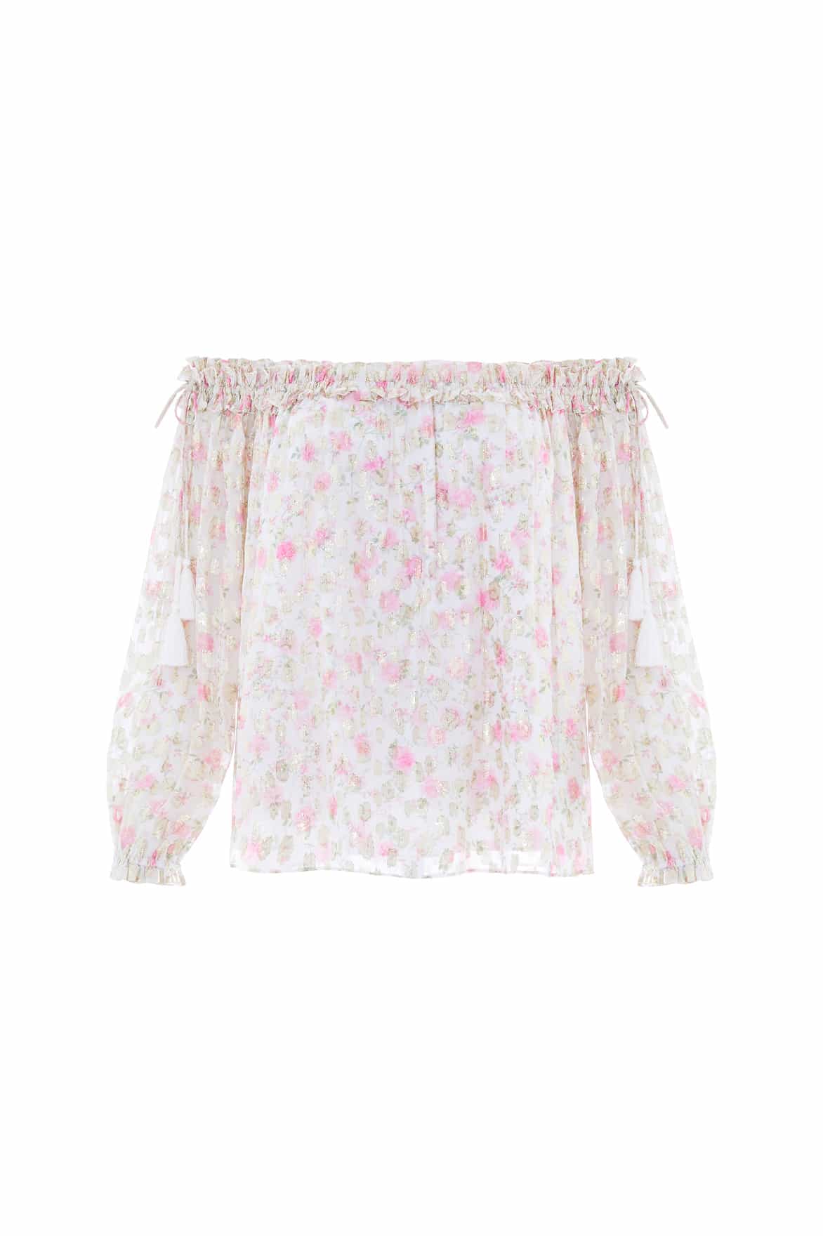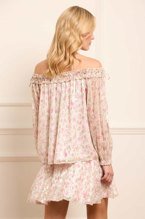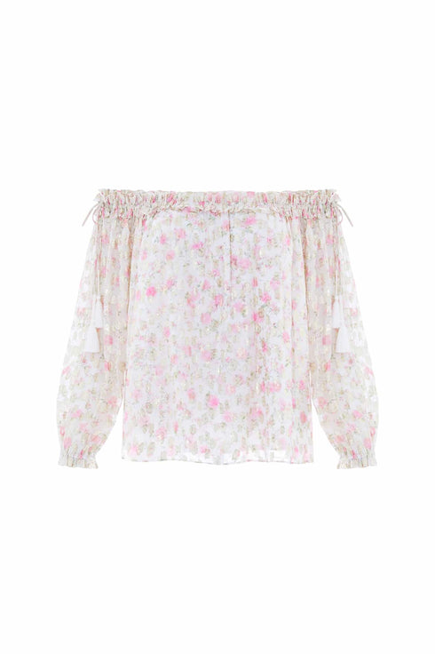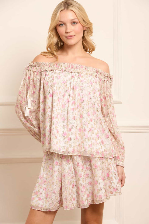 Rose Ditsy Lurex Off-Shoulder Top