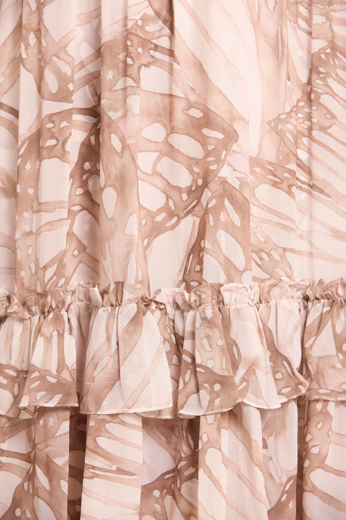 - Printed chiffon decorated with chiffon frills