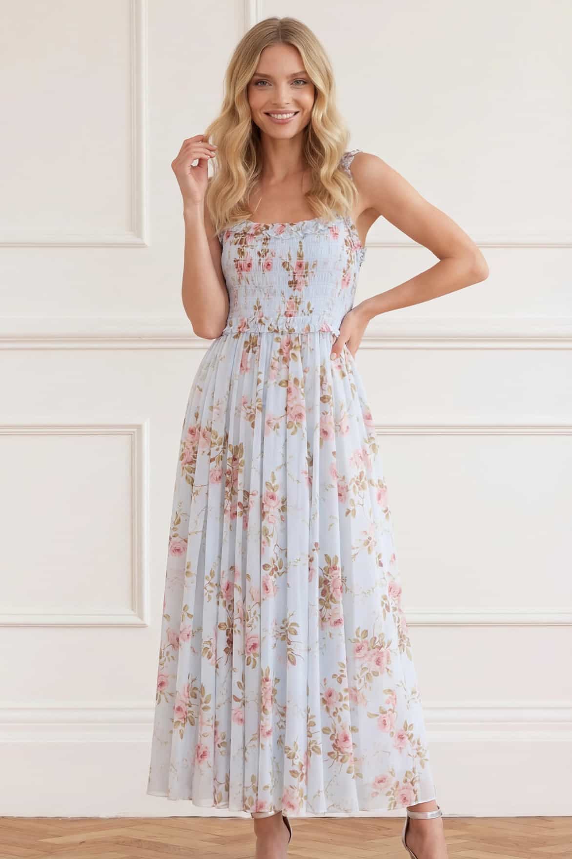Magnolia Ditsy Chiffon Smocked Cami Ankle Gown
