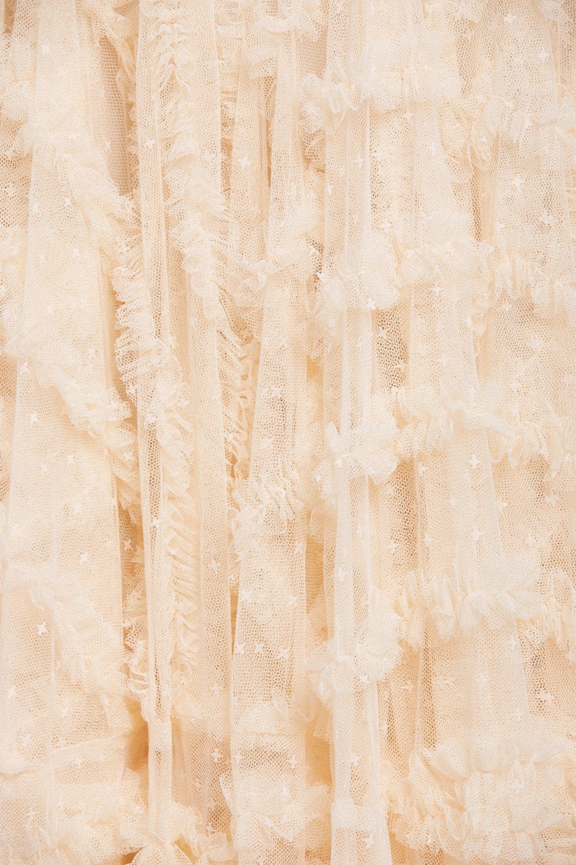 NEEDLE & THREAD EXCLUSIVE. Meet the Florence Ruffle Ankle Skirt in Champagne. This beautiful skirt is crafted with layers of kisses tulle, creating a voluminous romantic look. This ankle-length skirt is designed elegantly with a satin waistband and gathered neatly with tulle trims. Pair with your favourite knit and make an entrance this season.