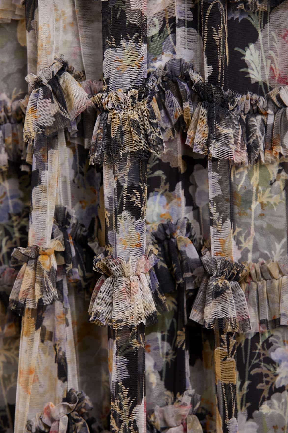 -Floral printed tulle with tulle ruffles