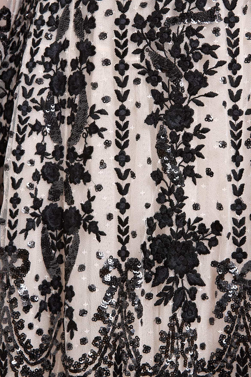 - Kisses tulle decorated with sequins and floral embroidery