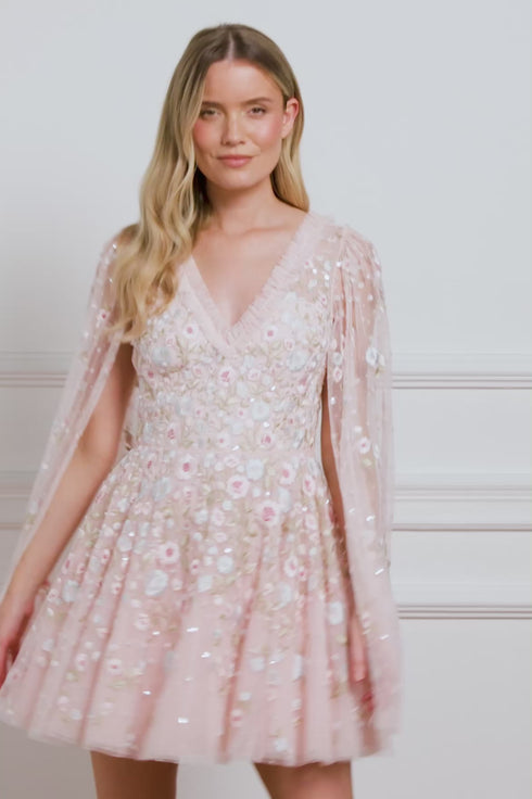 Ethereal Blooms Cape Sleeve Micro Mini Dress