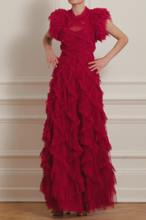 Genevieve Ruffle Gown - Red
