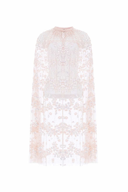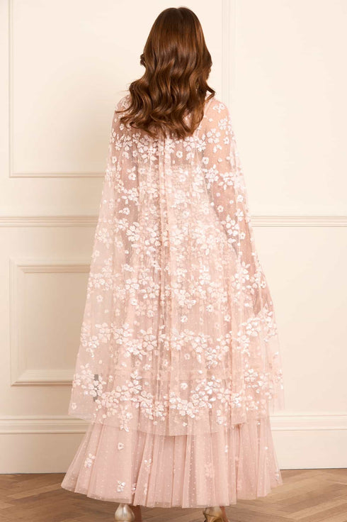 The Maeva Midaxi Cape in Pearl Pink reintroduces a signature Needle & Thread style with high-shine, glossy sequins for a lustrous finish. Developed with floral sequin motifs embellish the bodice and sleeves, while trailing floral borders gently fade towards the hem. Designed to layer perfectly with the Maeva Cami Ankle Gown, the cape features a frilled neckline and a hook-and-eye fastening, adding the perfect finishing touch.