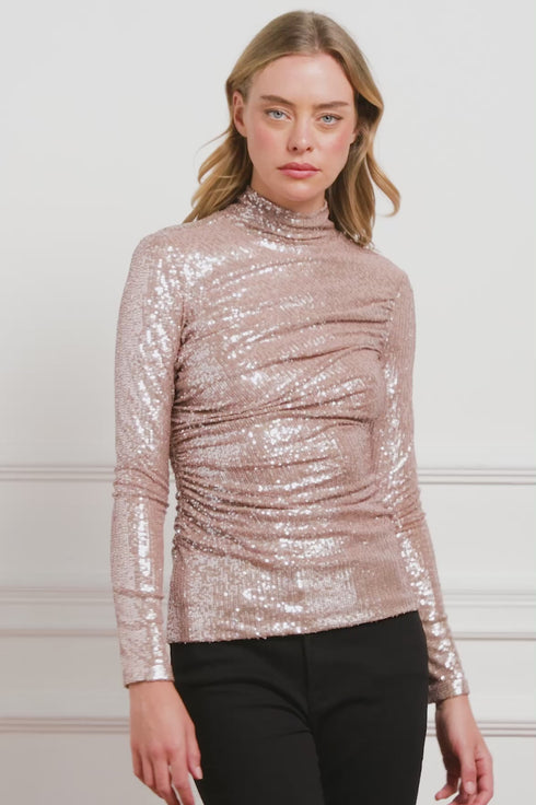 NEW SEASON. The Malia Turtleneck Top in Sandstone. A versatile piece infused with inspiration from the Bright Star collection, this party piece blends modern structure with romantic ease. Crafted from soft stretch mesh, the slim silhouette and high neckline recall Victorian modesty, while the neutral sandstone tone offers endless styling opportunities for day-to-evening looks.